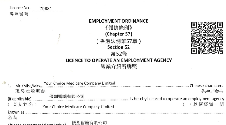 香港勞工處持牌職業介紹所,長年服務於安老行業,在疫情期間不辭辛勞,做了諸多工作得到行業的普遍認可;